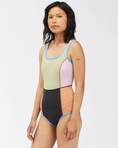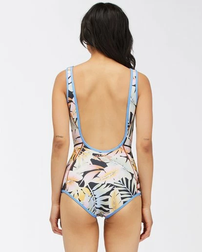 Say hello to your new favorite surf and saltwater essential. Delivering two amazing looks in one sleek little package, choose between retro color-blocking or paradise palms in the Seeker Reversible One Piece Swim. This sleeveless suit is made from stretchy and eco-conscious Superflex Recycler, built with strategically placed seams, high-end materials, and advanced construction techniques. Silicon Stretch interior lining adds incredible strength and flexibility without adding bulk. Details include zipperless entry and reinforced seams.