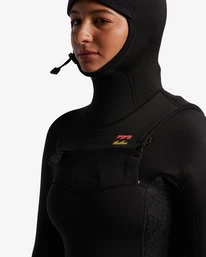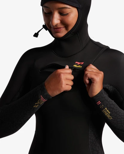 Engineered quality, the 5/4 Synergy Hooded Chest Zip Wetsuit is made to maximize performance in cold weather environments. The women’s full wetsuit is made from stretchy and eco-conscious recycled Superflex Jersey, built with strategically placed seams, high-end materials, and advanced construction techniques. Graphene recycler lining at the front and back panels adds incredible strength and heat without adding bulk. Details include durable glued and blind stitched seams reinforced with internal taping at high stress areas and a chest zip entry for easy on and off.