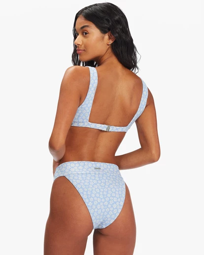 The perfect suit to match your wanderlusting tendencies, the Away We Go Aruba bikini bottom blooms with darling daisies on recycled nylon stretch. The high-rise Aruba has you covered up to the belly button, with medium coverage on the bum a long-legged silhouette.