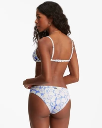 A bikini that goes above and beyondβ find your paradise in the Beyond The Blue Ceci Triangle bikini top. This skimpy women’s bikini top curates a fixed-triangle design with a tropical print set on a backdrop of sky blue sweetness. A timeless essential for sun-soaked days, this top not only has the look you’re after, but the recycled rib fabric also gives it a premium feel. And the fit? Adjustable straps and back hook closure mean you can customize for the perfect shape.