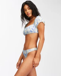 If you can’t make it to the tropics, bring the tropics to you with the Beyond The Blue Isla bikini bottom. This women’s bikini bottom is bronzing bliss with skimpy bum coverage and a versatile design that can be worn high or low on the hips. Made with recycled rib fabric, it’s not only soft, stretchy, and comfortable, but the sky-blue tropical print sets it apart from the rest.