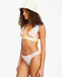 Sunkissed and sea-soaked, the Break Of Dawn Plunge Bikini Top delivers a fresh take on summertime stripes. This women’s pullover top offers medium coverage with a deep V-neck, wide over-the-shoulder straps, and a comfort-driven waistband. The bold print delivers standout style and the stretchy recycled swim fabric offers a premium feel.