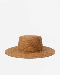 The perfect way to top off your warm-weather look, this woven straw hat is a beach-chic essential with a wide, flat brim.