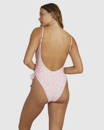 With gathered drawcord sides, a tie at the front, and a low scoop back, the Daisy Craze Eden swimsuit is no ordinary one-piece. The women’s swimsuit features a fun floral print on recycled rib fabric. It’s super-soft, perfectly stretchy, and skimpy at the bum for prime sunning potential.