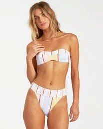 Sun-burnt and sea-bleached, the Feeling Sunny Aruba brings high waisted lines to modern bikini bottoms. Made from soft and stretchy, recycled swim fabric, the women’s bikini bottom features mixed stripe prints cut with a wide, flattering waistband that falls just below the belly bottom and moderate bum coverage.