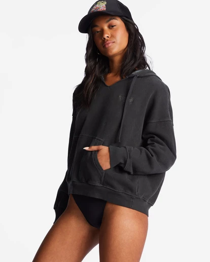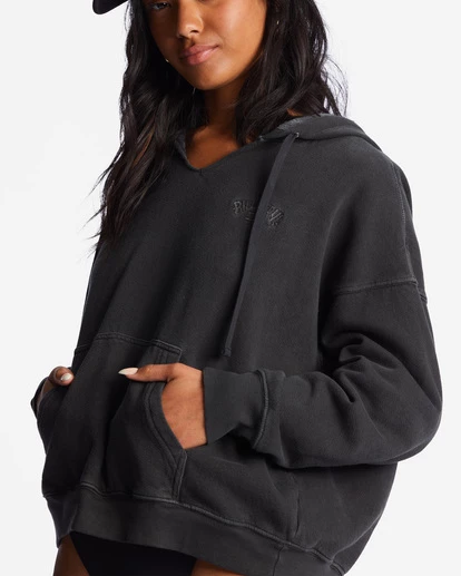 Made of blended cotton fabric, this comfy women’s hoodie has a relaxed fit with a V-neckline, a kangaroo pouch pocket, and logo embroidery. A vintage wash completes the lived-in look.