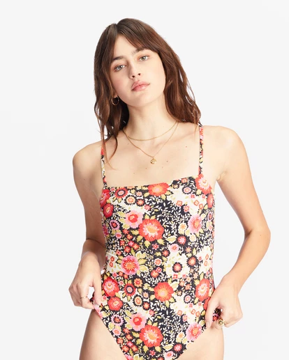 A fave style inspired by our favorite moment of the day; the Magic Hour One-Piece Swim Suit features a bold print on recycled peach stretch fabric. This women’s swimsuit features a straight neck with a built-in bra, and a skimpy bum cut designed to sit above the hip.