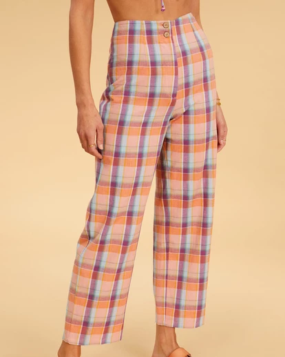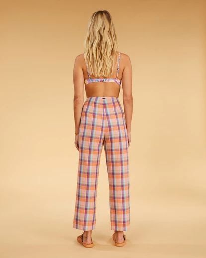 The Salty Blonde Break Point Pants are summer-ready and hot with disco fever. In true 70s fashion, we’ve said buh-bye to the belly button and hello to the booty with these high-waisted essentials that are fitted where it counts with an easy, cropped leg. As if their sunsoaked, retro checker print wasn’t enough to win your heart, we’ve made these beauties with Eco-Conscious Cotton linen so they’re not only groovy for you, but for Mother Nature too. Details include coconut buttons and a zip fly closure.