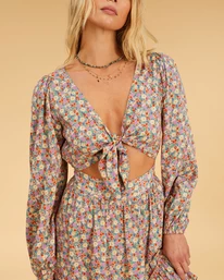 Meet the mini dress of your dreamsβ a collection piece from Billabong x The Salty Blonde and crafted with eco-responsible FSC Certified Viscose, the Salty Blonde Ditsy Dreamer mini dress pairs long blouson sleeves and a cute front tie with a ruffled mini skirt. Perfect for everything from holidays abroad to cocktails with the girls. Dream on.
