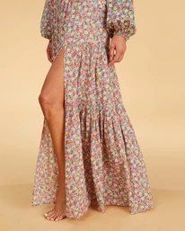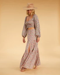 A boho beauty with the perfect touch of coastal cool, the Salty Blonde Free Love skirt features a playful floral print on eco-responsible FCS Certified viscose. This flowy maxi skirt is styled in a relaxed shape with a tiered design and a high split at the leg for easy-breezy movement.