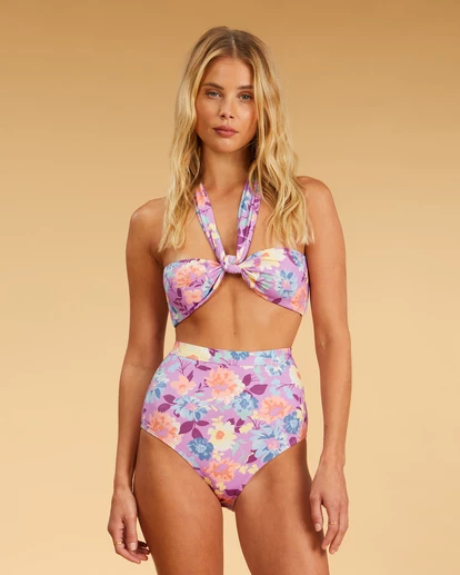 Like wildflowers blooming from the sea— Seek the sun in the Salty Blonde Halleys Garden High Waist bikini bottom. Crafted with recycled yarn, this floral swim bottom is a cheeky beauty with a covers-the-belly-button high rise waist, making it the ideal cut for everything from sun to surf.