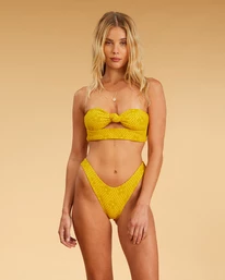 Everything she touches turns to goldโ the Salty Blonde Made Ya Look Hike bikini bottom ups the lux factor with a textured floral pattern on soft recycled yarn. The 80s-inspired Hike sits above the hip to create a long-legged silhouette, while skimpy bum coverage gives you max bronzing potential.