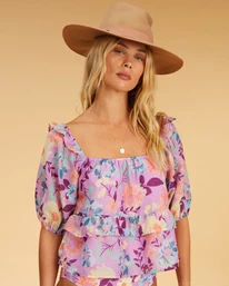 Make it sweetโ but keep it salty. The Salty Blonde Sweetest Ever top pulls at our heartstrings with dreamy puff sleeves and a peplum ruffle hem. Crafted with soft recycled yarn, this flowy floral top from our Billabong x The Salty Blonde adds the perfect touch of romance to your laid-back look.