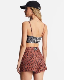 Made of recycled stretch fabric in animal print, these high-waisted boardshorts have a relaxed shape with a convenient back pocket and a lace-up closure.