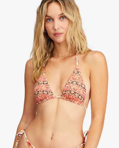Two prints and multiple ways to wear? Keep your options open and style on point with Swept Away Multi Triangle reversible bikini top. Made with recycled nylon stretch, this convertible swim top ties at the neck and back, giving you the freedom the play with your silhouette.