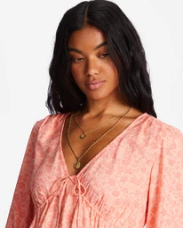 - Closure/Neck: V-neckline with ties at bust.