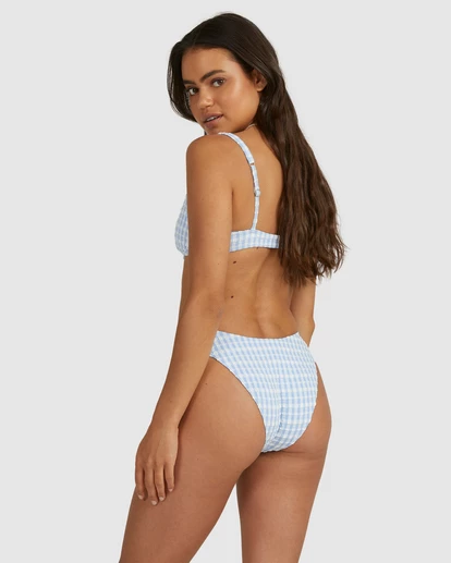 Show off your tan lines in this super skimpy high cut pant with sky high sides. Made from a textured gingham seersucker like stretch swim fabric, the high cut bikini bottom is designed to wear over the hip, creating a long-legged silhouette inspired by decades past. The Hike cut features a super slim seat and low front rise for maximum tanning potential.