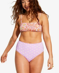 Made of recycled stretch fabric, this Smiley Collection cropped bikini top has a pullover design with a reversible print and adjustable straps. An instant mood booster.